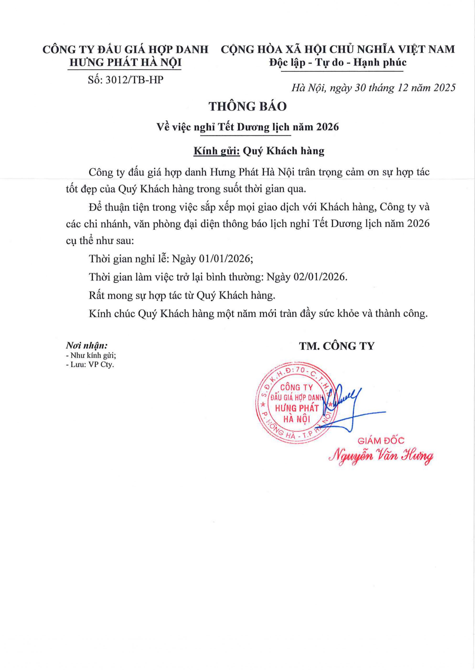 THÔNG BÁO ĐẤU GIÁ PLHĐDVĐG số: 01.8/2025 Tổ chức hành nghề đấu giá tài sản: Công ty Đấu giá Hợp danh Hưng Phát Hà Nội. Địa chỉ trụ sở: Số 46/172 Âu Cơ, phường Tứ Liên, quận Tây Hồ, TP Hà Nội). Người có tài sản đấu giá: Ngân hàng TMCP Quốc tế Việt Nam …
